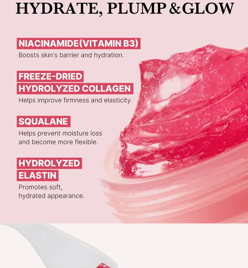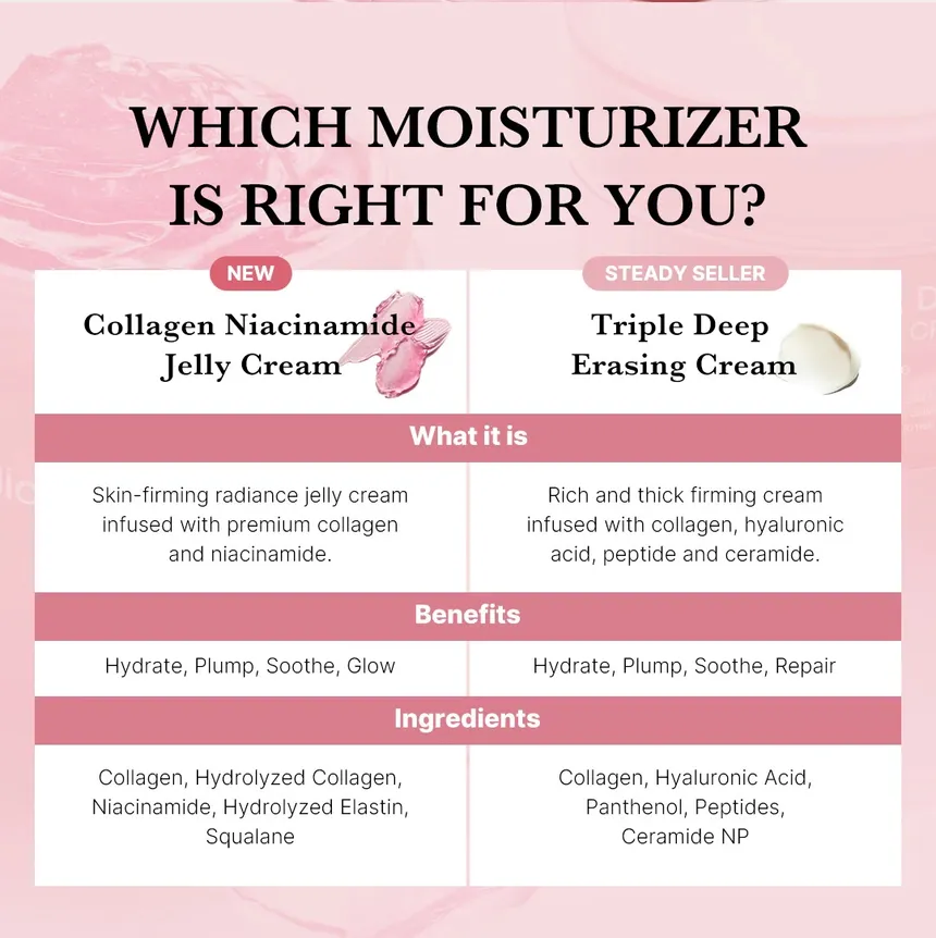 Collagen Jelly Cream combines a hydrating jelly texture with powerful collagen and moisture-boosting ingredients to support skin firmness, smoothness, and bounce. Its gel-cream formula absorbs quickly without heaviness, helping to lock in hydration while strengthening the skin’s moisture barrier. Regular use can help improve elasticity, reduce the look of dryness and fine lines, and leave skin with a fresh, supple feel. Ideal for daily use on all skin types, especially those looking for a boost in hydration and elasticity.