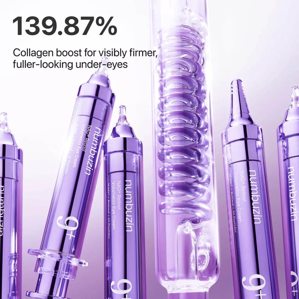 numbuzin No.9 NAD+ Retinol Volumetox Eye Cream blends powerful actives like NAD+ and retinol to target signs of aging around the eyes. NAD+ helps support cellular energy and skin resilience, while retinol works to enhance cell turnover and improve the look of fine lines and crepey texture. This eye cream delivers deep hydration and supports skin elasticity, helping the under-eye area appear firmer, smoother, and more lifted. Lightweight yet nourishing, it absorbs easily and layers well under makeup or sunscreen. With consistent use, it helps reduce the appearance of wrinkles and gives a more refreshed, youthful look to tired eyes.